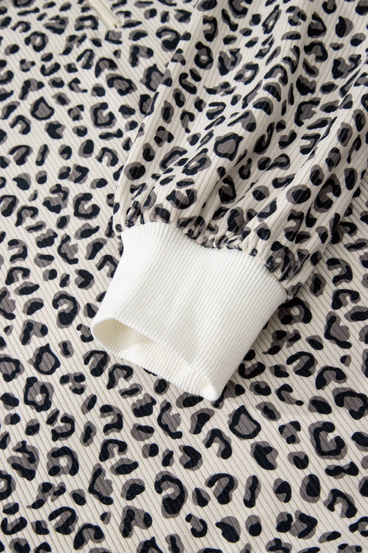 Leopard Quarter Zip Corduroy Sweatshirt