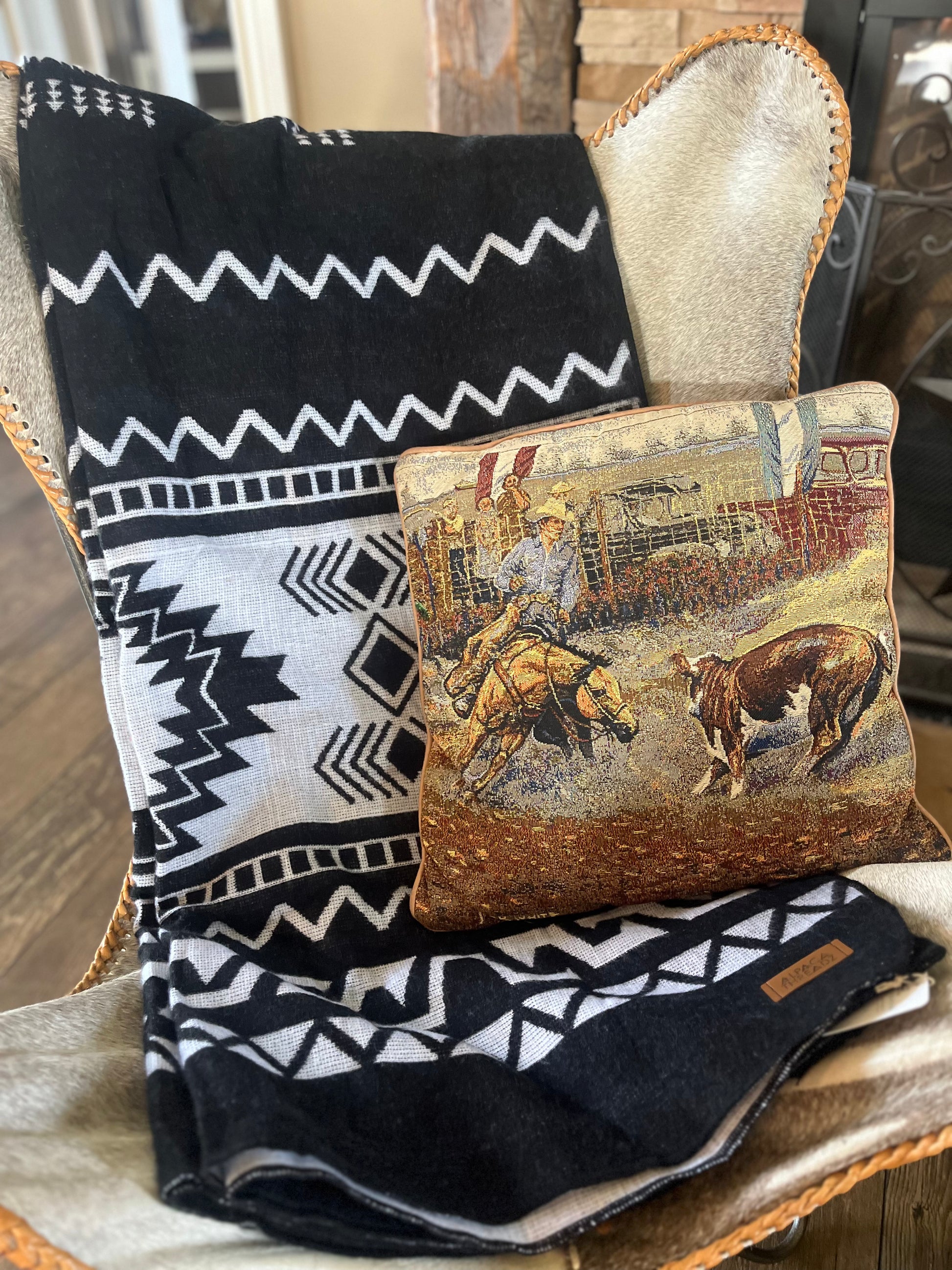 Andean Alpaca Wool Blanket - Black & White