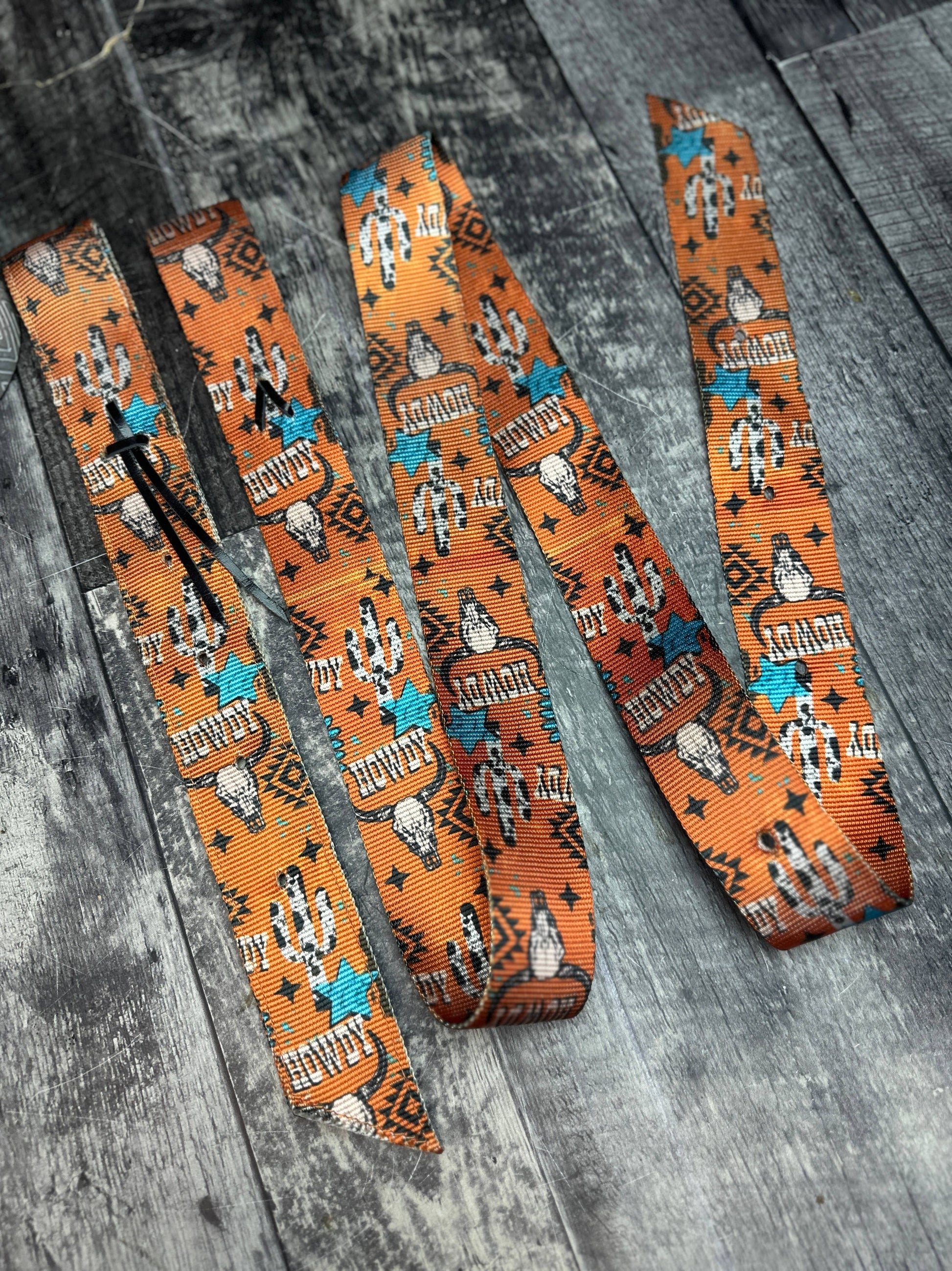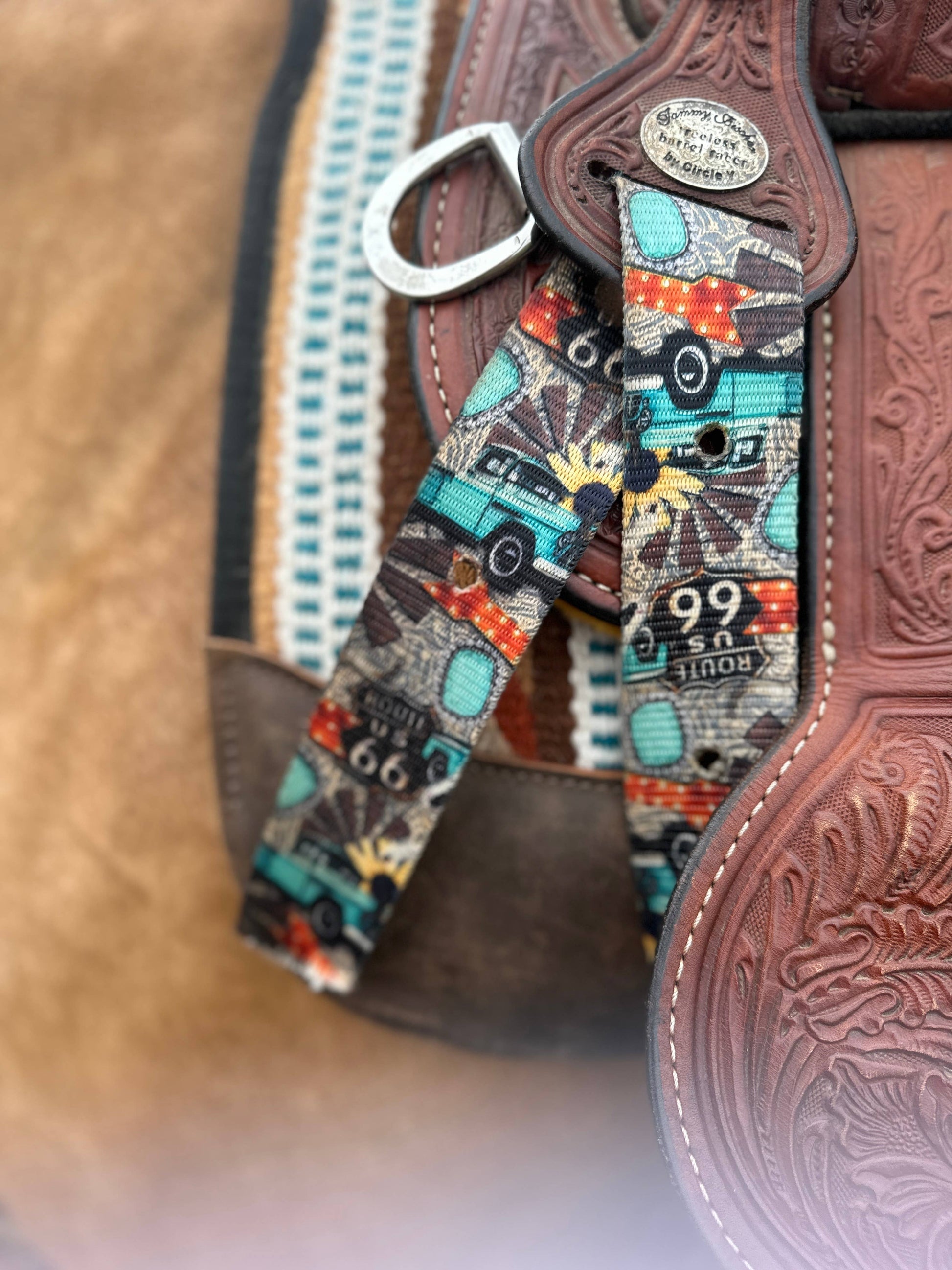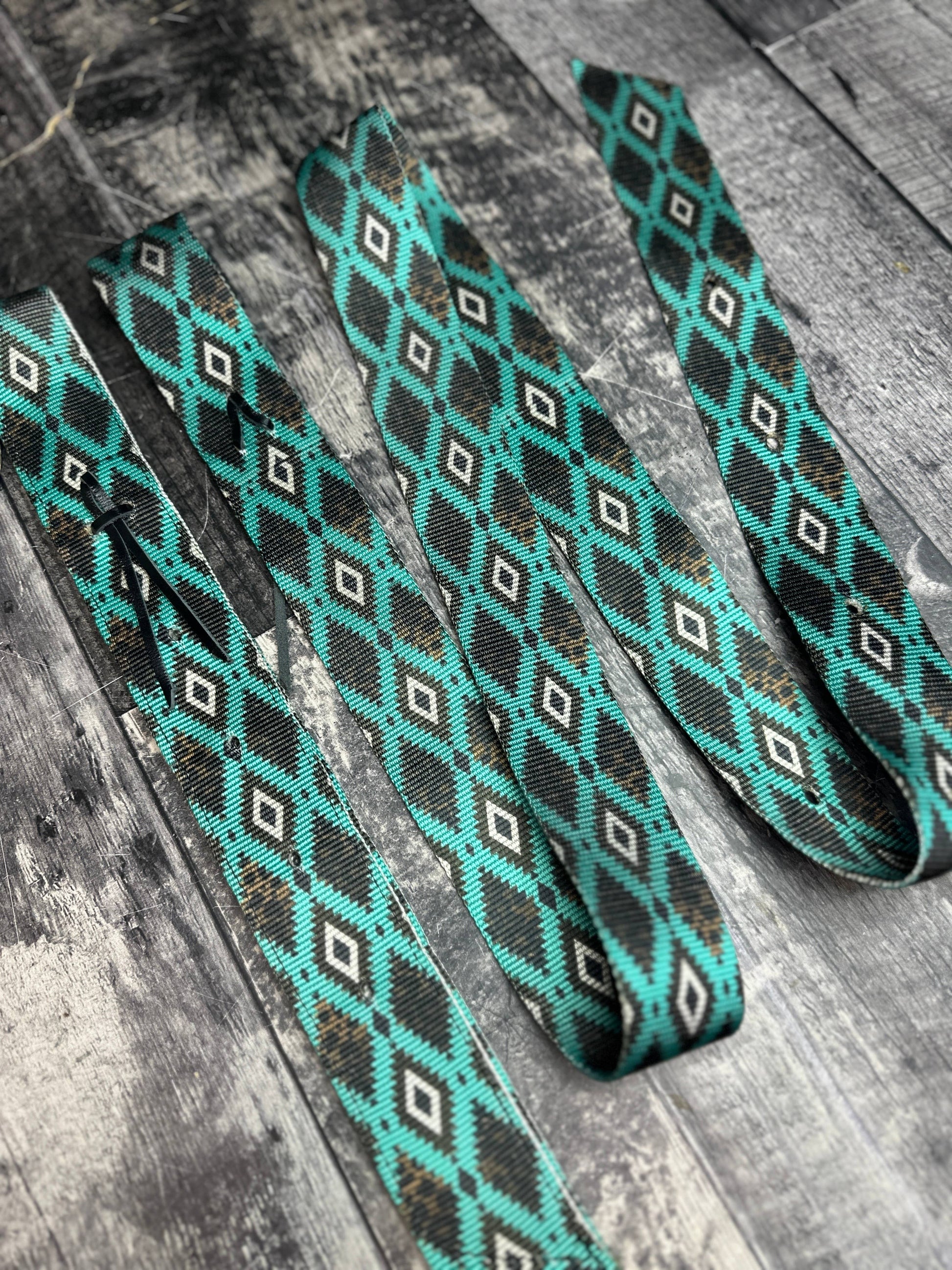 72" x 1.75" Premium Quality Nylon latigo strap. This tie strap features premium quality webbed nylon with leather tie. Measures 6'. 18" x 1.75" Premium Quality Off Billet. This billet features premium quality woven 2 ply nylon with 6 pre punched holes.