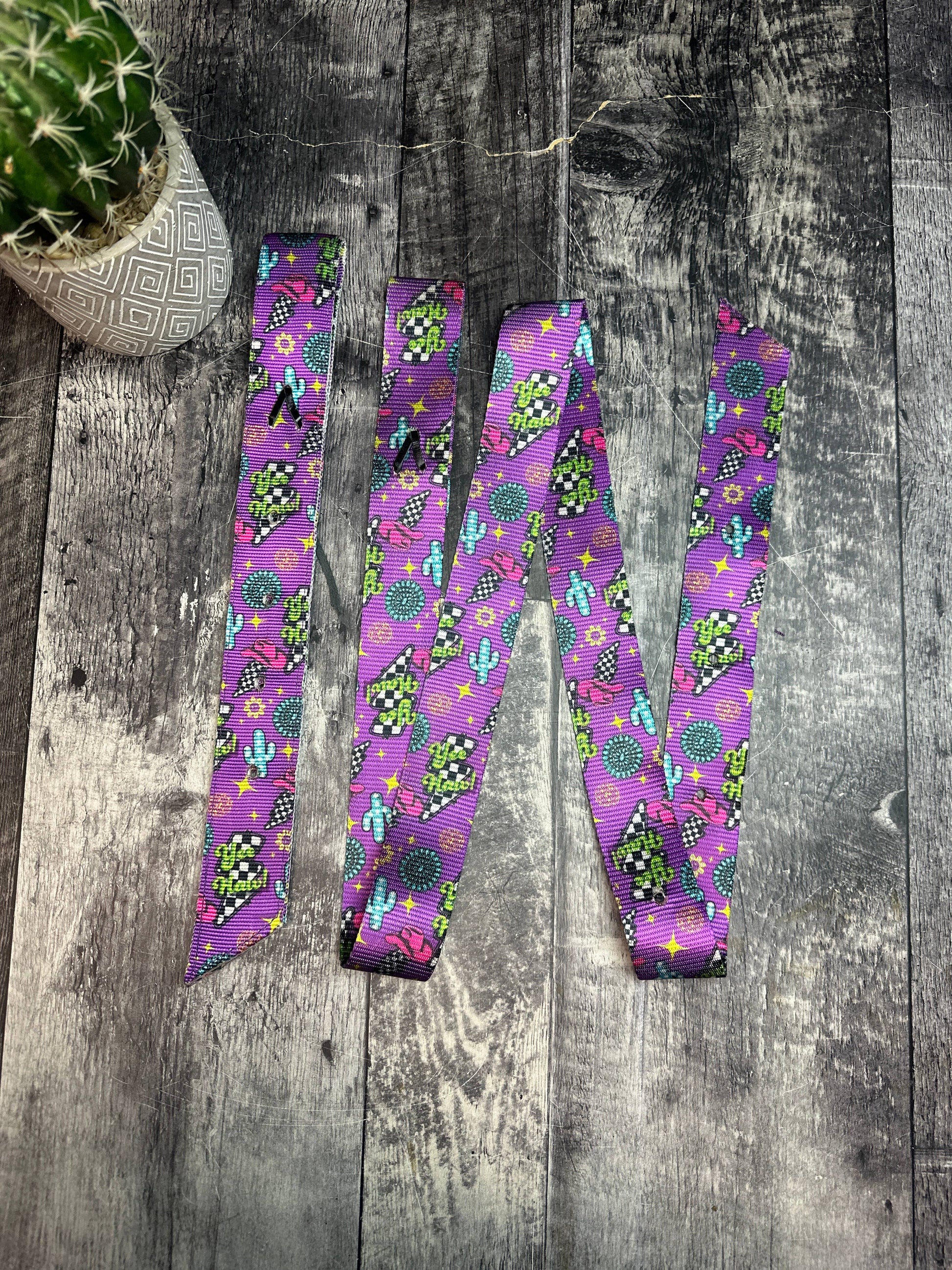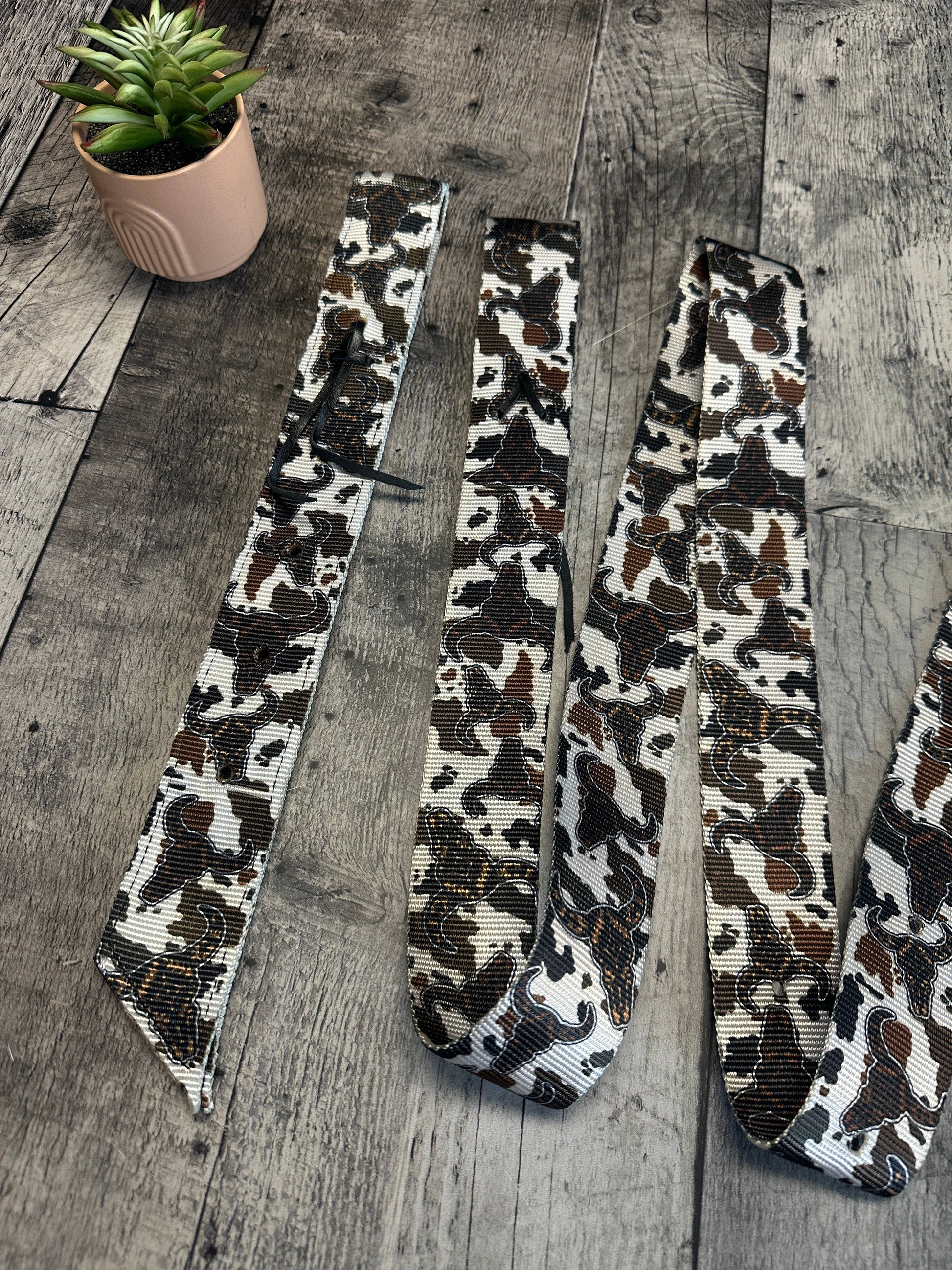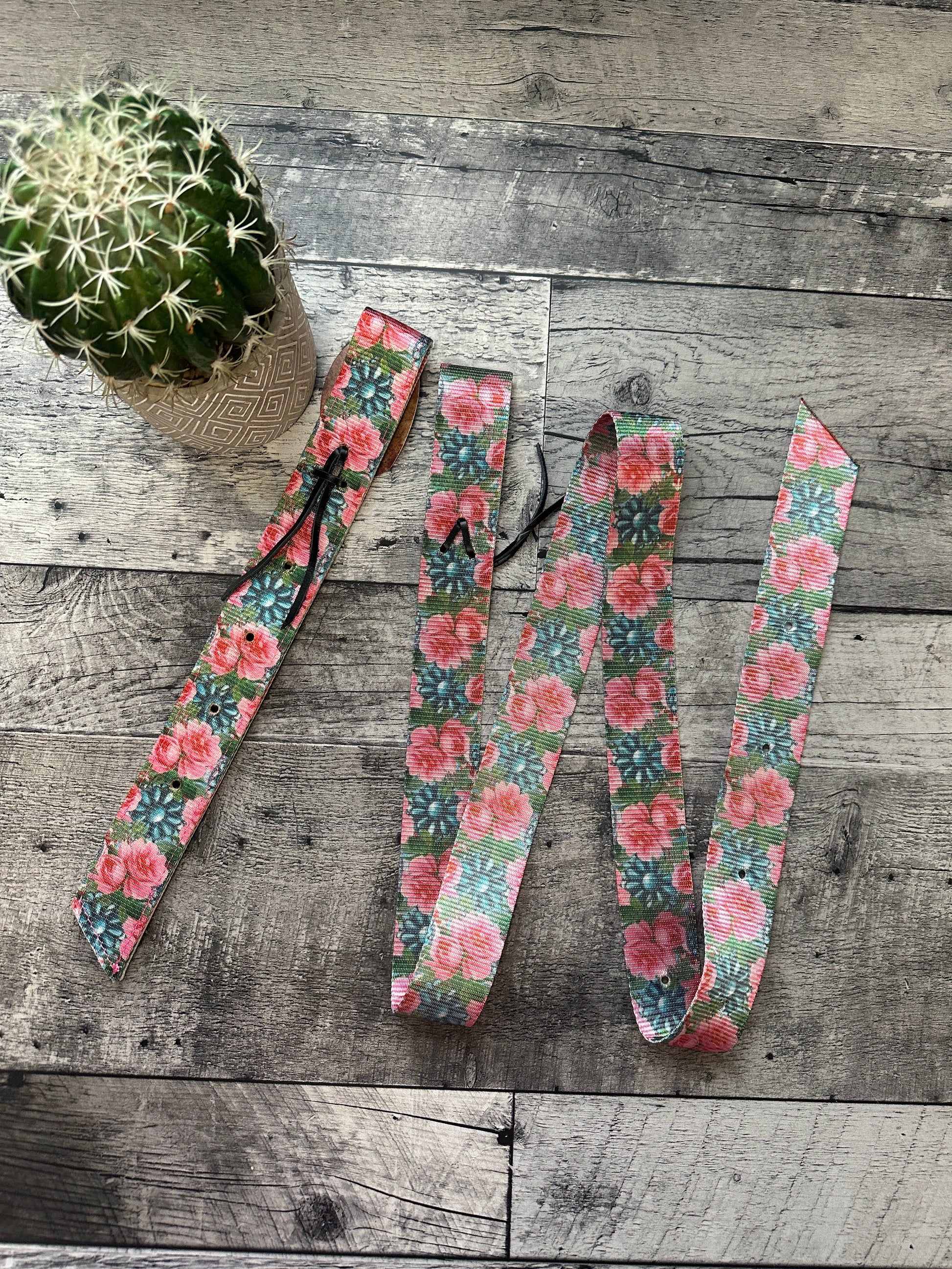 72" x 1.75" Premium Quality Nylon latigo strap. This tie strap features premium quality webbed nylon with leather tie. Measures 6'. 18" x 1.75" Premium Quality Off Billet. This billet features premium quality woven 2 ply nylon with 6 pre punched holes.